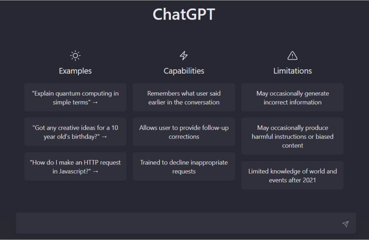 ChatGPT è una chat automatica che utilizza l'IA basata su un vasto database di testo preso da internet, che utilizza per rispondere a qualsiasi tipo di questioni. Sicuramente non privo di limitazioni, ChatGPT è già un grande strumento che può semplificare la vita sia in molti settori professionali che non
